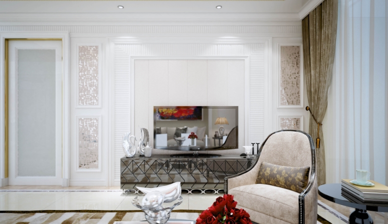 電視背景墻應與客廳裝修風格統(tǒng)一,作為客廳的主背景和主風景,一定要符合客廳裝修的整體風格,可以有特色但不能特立獨行。