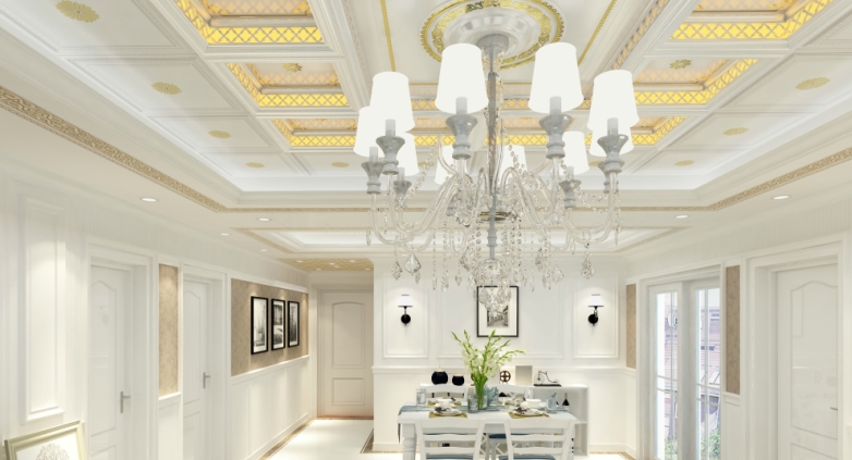 頂部扣板上令人神往的圓潤皎潔月盤,好似流轉(zhuǎn)的光陰,散逸出動人的風(fēng)采。整體暖黃的布局,給客廳籠罩上一層溫馨氛圍。