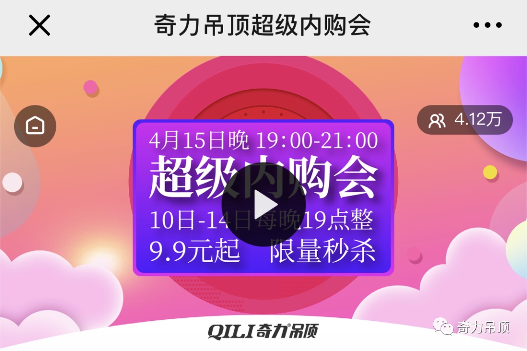 4月15日晚7點(diǎn) 奇力吊頂超級(jí)內(nèi)購(gòu)會(huì)直播間 更多優(yōu)惠套餐、優(yōu)惠產(chǎn)品等著大家!正在裝修的小伙伴 千萬(wàn)不要錯(cuò)過(guò)哦!