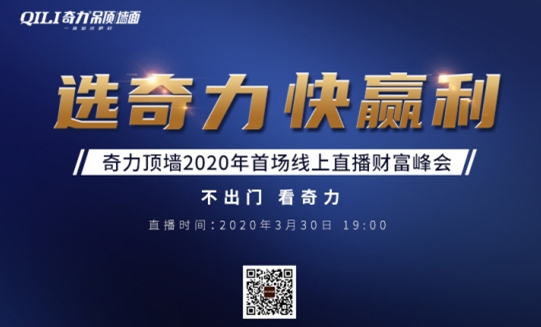 “選奇力 快盈利” 奇力頂墻2020首場線上直播財(cái)富峰會 2020年3月30日19:30, 不出門,看奇力! 讓我們一起走向財(cái)富!