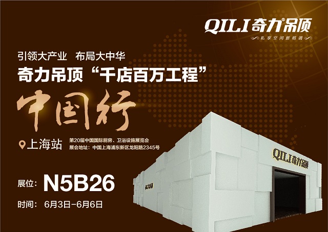 6月3日,2015第20屆中國(guó)國(guó)際廚房、衛(wèi)浴設(shè)施展覽會(huì),上海新國(guó)際博覽中心即將盛裝啟幕。奇力吊頂攜2015年“梵帝”新品于N5館B26展位誠(chéng)邀您蒞臨現(xiàn)場(chǎng),品鑒客廳吊頂領(lǐng)導(dǎo)者“引領(lǐng)大產(chǎn)業(yè).布局大中華”征程利器!15年積淀鑄就吊頂行業(yè)先行領(lǐng)導(dǎo)者榮耀,技術(shù)積累奠定客廳吊頂領(lǐng)導(dǎo)者和暖風(fēng)電器領(lǐng)導(dǎo)者地位,積極進(jìn)取,和夢(mèng)想一起成長(zhǎng),奇力“千店百萬工程”中國(guó)行,接力北京,登陸上海!