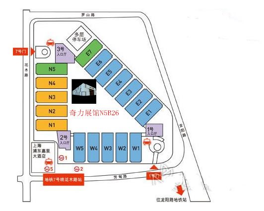 上海新國際博覽中心位于龍陽路、羅山路交匯處,易于通行。從市中心橫跨南浦大橋、楊浦大橋可直達(dá)。