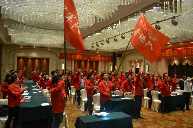 蒲老師宣布會(huì)議積分規(guī)則,根據(jù)各組的互動(dòng)、積極性、團(tuán)隊(duì)的整體性等進(jìn)行加分,積分最多者組,評(píng)為冠軍組贏得獎(jiǎng)勵(lì)。“拼搏到無能為力,努力到感動(dòng)自己”全場(chǎng)奇力的精神,蒲老師為氣氛熱烈的軍團(tuán)加分,隨后現(xiàn)場(chǎng)更是互動(dòng)不斷,各個(gè)隊(duì)伍都為自己的團(tuán)隊(duì)贏取加分。