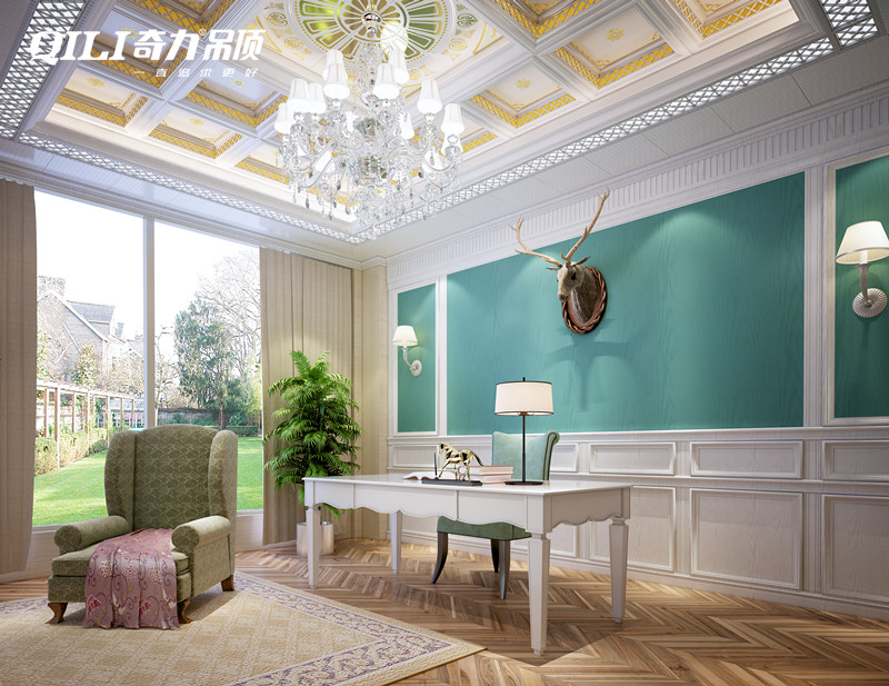 白色木紋墻裙與藍(lán)綠色墻面遙相呼應(yīng),難得一見的清麗脫俗,陽光透過紗簾慵懶的投射在地毯上,拉出長長的影子,一杯咖啡、一本好書,就著一米陽光,盡情享受這份春色吧!