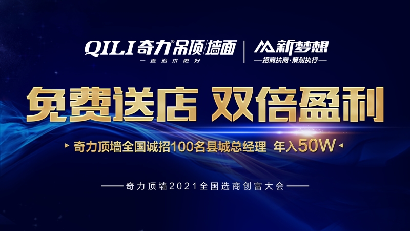8月12日,奇力頂墻強(qiáng)勢(shì)開(kāi)啟“免費(fèi)送店 雙倍盈利”全國(guó)選商創(chuàng)富大會(huì)。本次線上創(chuàng)富大會(huì),邀請(qǐng)到奇力頂墻副總經(jīng)理洪總、銷(xiāo)售總監(jiān)陳總、奇點(diǎn)商學(xué)院李老師,向客戶全方位展示奇力頂墻品牌、營(yíng)銷(xiāo)...
