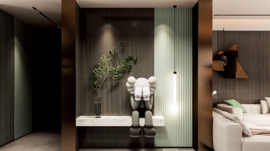 當?shù)蹴斉c空間完美融合,便賦予了空間美的想象。大尺寸扣板吊頂,利用藝術(shù)性的設(shè)計語言塑造出空間的高級感。